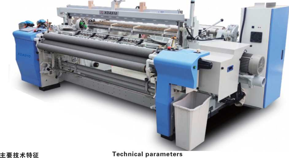 - 引緯形式:主噴嘴、輛噴嘴并用式,使用異型鋼箝。電磁閥控制。
